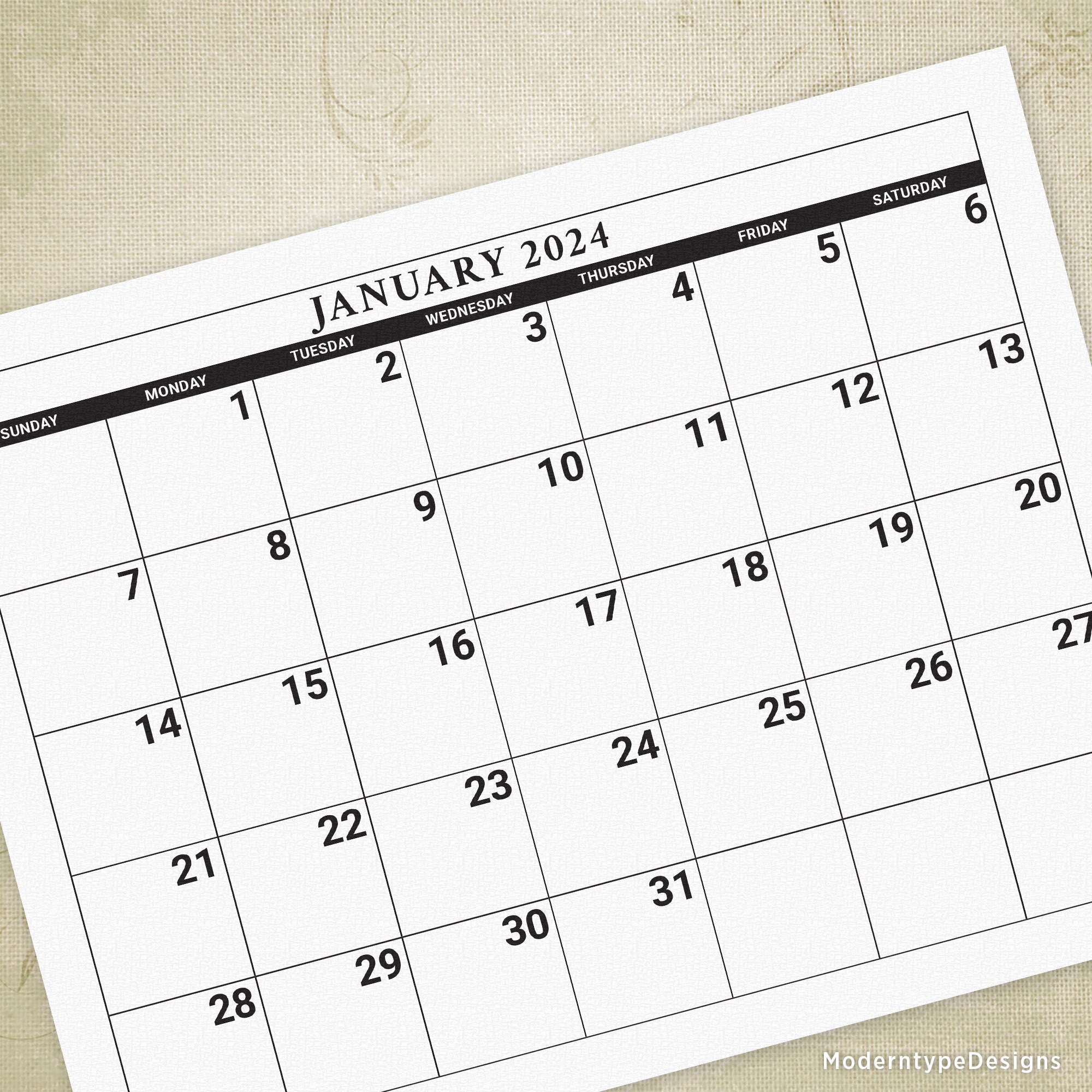 Free Large Printable Calendar 2024 Monthly